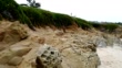 Panning across unique Tafoni rock formations at Bean Hollow State Beach, Pescadero, California, 2019.