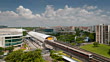 Timelapse photography of Tampines New Town Central in day time, people walking towards MRT station and bus interchange, Tampines New Town is a regional centre that lies to the east of Singapore's city centre.
