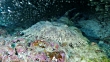 Tasseled wobbegong (Eucrossorhinus dasypogon) hiding in a rocky crevice. This is a large and well-camouflaged type of carpet shark, found around the tropical reefs of northern Australia. It spends the day resting in a crevice, emerging at night to feed on smaller fish. It can reach a length of up to 1.8 metres, and has been known to attack and even kill humans that approach too close. Filmed on the Great Barrier Reef, Australia.