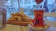 çay ve tost yemek ve çay karıştırmak. türk çayı na şeker atıp karıştırmak