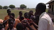 MS Teacher presenting solar power fan to children outdoors, Tamale, Ghana - HD stock video