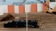 These home movie scenes show part of the elaborate Technical Circus: the outdoor show staged for spectators at the GM Powerama. Against a backdrop of giant, colorful geometric set pieces, these shots show horses jumping, a bulldozer hoedown, and miniature versions of a steam train and GM's new Aerotrain.