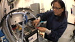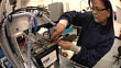 MS Technician attaching wire to negative terminal while testing prototype lithium ion battery used to power electric automobile / Troy, Michigan, USA - HD stock video