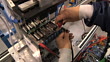 CU Technician attaching wire to negative terminal while testing prototype lithium ion battery used to power electric automobile / Troy, Michigan, USA - HD stock video