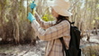 Asian female teen Biodiversity explorers work in rainforests , analyzing water and forest conditions . biologists , environmental .