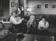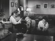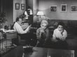 B/W 1956 2 teen girls watching tv sway dreamily to music / man stops reading paper, starts swaying - stock video