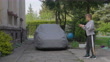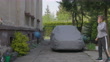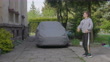 Teenage boy playing with a ball in the backyard on a spring day. - 4K stock video