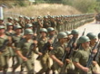Tension in Lebanon grows; ITN LIB (TX 29.6.83)MS Lebanese President Amin Gemayel delivering speechMS Lebanese army recruits march towards PULL BACK as L-R