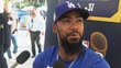 LOS ANGELES, CALIFORNIA - OCTOBER 24: Teoscar Hernandez #37 of the Los Angeles Dodgers speaks about the meaning of playing in the World Series is during workout day ahead of Game 1 of the 2024 World Series at Dodger Stadium on October 24, 2024 in Los Angeles, California. (Footage by Lucas Mayer/Getty Images)