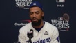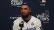 LOS ANGELES, CALIFORNIA - OCTOBER 26: (INTERVIEW) Teoscar Hernandez #37 of the Los Angeles Dodgers speaks about responding to Juan Soto's home run with a home run of his own during a press conference after Game Two of the 2024 World Series between the Los Angeles Dodgers and the New York Yankees at Dodger Stadium on October 26, 2024 in Los Angeles, California. (Footage by Lucas Mayer/Getty Images)