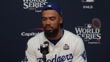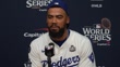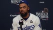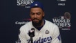 LOS ANGELES, CALIFORNIA - OCTOBER 26: (INTERVIEW) Teoscar Hernandez #37 of the Los Angeles Dodgers speaks about Yoshinobu Yamamoto's performance during a press conference after Game Two of the 2024 World Series between the Los Angeles Dodgers and the New York Yankees at Dodger Stadium on October 26, 2024 in Los Angeles, California. (Footage by Lucas Mayer/Getty Images)