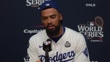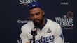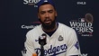 LOS ANGELES, CALIFORNIA - OCTOBER 26: (INTERVIEW) Teoscar Hernandez #37 of the Los Angeles Dodgers speaks about hitting a go ahead home run during a press conference after Game Two of the 2024 World Series between the Los Angeles Dodgers and the New York Yankees at Dodger Stadium on October 26, 2024 in Los Angeles, California. (Footage by Lucas Mayer/Getty Images)