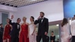 CANNES, FRANCE - MAY 15: (EDITORIAL USE ONLY) (EDITOR'S NOTE: Clip was created using a star filter) (AUDIO OMITTED) (L-R) Tessa Hoder, Besir Zeciri, Trine Dyrholm, Vic Carmen Sonne and Magnus von Horn attend the "Pigen Med Nalen" (The Girl With The Needle) Red Carpet at the 77th annual Cannes Film Festival at Palais des Festivals on May 15, 2024 in Cannes, France. (Footage by Ming Yeung/Getty Images)