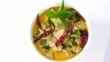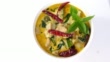 Thai food chicken green curry on white background. top view rotating.