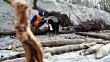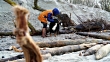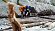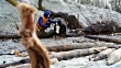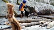 The attractive 50 years old mature woman with the Belgian mountain dog resting at the beach of the Baltic sea, Zelenogradsk, Kaliningrad region, Russia. 4K UHD video