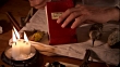 The bodies of mockingbirds litter the desk of naturalist Charles Darwin who writes in a notebook. Available in HD. (Core Number: NBRY631W)