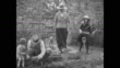 The Chamberlain family together in a garden, with dog running around behind and playing with the son; they have tea at an outdoor table (youngest child feeds scraps to the dog) and Sir Austen smokes a cigarette as he reads a newspaper while seated on a verandah in a lawn chair / Note: exact year not known