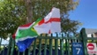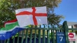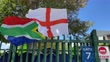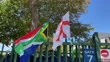 CAPE TOWN, SOUTH AFRICA - FEBRUARY 24: The competing nations flags seen outside the stadium ahead of the ICC Women's T20 World Cup Semi Final match between England and South Africa at Newlands Stadium on February 24, 2023 in Cape Town, South Africa. (Footage by Mike Hewitt/Getty Images).