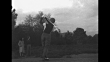 The Duke (in knickers and beret) takes a practice swing and drives / Edward, Leopold walk fairway with caddies / Leopold, right profile, looking down course / the pair joined by Princess Lilian walk though rough / Leopold swings with wood, Edward joins and bends to look / VS Princess swings