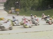 SALZBURG, AUSTRIA - JUNE 12: (COMPILATION) (AUDIO OMITTED) The field line up at the start with Sito Pons on his Campsa Honda NSR250 in pole position and leading into turn one ahead of Jacques Cornu on his Team Parisienne-Elf Honda NSR250 during the Austrian Grand Prix at Salzburgring on June 12, 1988 in Salzburg, Austria. (Footage by Duke Video/Getty Images)