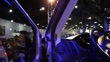 The Ford Motor Co 2015 Transit Skyliner luxury concept van is unveiled at Galpin Auto Sports in Van Nuys, California, US, Shots of the trunk space with three designer tot bags on display above a large speaker system control tower, Shots of the Ford logo mounted on the steering wheel, Close up of the stereo system installed from Pakedge Device & Software Inc