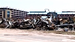 The Grand Casino ocean front hotel in Biloxi, Mississippi was severely damaged by Hurricane Katrina / Pan over the area to see other damaged structures and stacks of plowed wreckage.