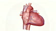 An animation of the heart. The camera zooms in and rotates to show the heart relative to the respiratory system and in isolation.