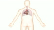 "An animation of the heart. The camera rotates to show the position of the heart relative to the skeleton, respiratory system and surface anatomy of the upperbody."