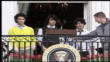 The Jonas Brothers sing the United States National Anthem at the White House.