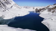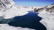 A tranquil view of Tilicho Lake amid the vast Himalayan snowfields.