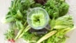 The moment the vegetables go into the green smoothie in slow motion - HD stock video