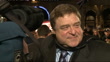 'The Monuments Men' film release: Film premiere; John Goodman (actor) being interviewed by other crew