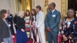 The Queen welcomed a star-studded line-up to Buckingham Palace for the final of a national writing competition, including Oscar-winning actress Olivia Colman, comedian Matt Lucas, and two Gladiators dressed in Lycra.