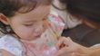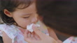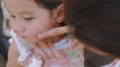 The rash usually appears on toddler girl. Allergy red cheek in a child - 4K stock video