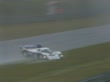NUERBURG, GERMANY - AUGUST 24: (AUDIO OMITTED) The Rothmans Porsche 962C of Jochen Mass and Bob Wollek slides off track onto the muddy grass and into a barrier in the wet conditions during the ±·Ã¼°ù²ú³Ü°ù²µring 1000km at ±·Ã¼°ù²ú³Ü°ù²µring, on August 24, 1986 in ±·Ã¼°ù²ú³Ü°ù²µ, Germany. (Footage by Duke Video/Getty Images)