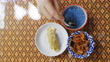 A Cooling Thai Summer Treat Thai Khao Chae With mellow side dishes such as bell peppers stuffed with pork and shrimp Egg wrapped in tiger hand, shredded pork, stir-fried radish Dried chili stuffed with shallot stuffed with fried shrimp paste balls and sweet stir-fried yison fish
