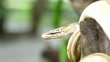 4K footage Extreme Close-up Front view, snake moves slowly on the tree, The concept of animal skin color.