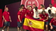 LAS ROZAS, SPAIN - AUGUST 10: (EDITOR'S NOTE: Audio/music licensing is not included.) The Spanish men's Olympic team receives a tribute for winning the gold medal at the Paris 2024 Olympic Games on August 10, 2024 in Las Rozas, Spain. (Footage by Europa Press via Getty Images)