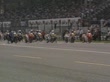 MONZA, ITALY - MAY 18: (AUDIO OMITTED) (COMPILATION) The start of the race, with Wayne Gardner failing to bump start his Rothmans Honda NSR500; as Eddie Lawson (Agostini Yamaha YZR500) leads the pack through the first chicane, Gardner finally gets going, flexing his injured knee during the Nations Motorcycle Grand Prix at Autodromo Nazionale Monza on May 18, 1986 in Monza, Italy. (Footage by Duke Video/Getty Images)
