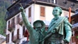 CHAMONIX, FRANCE - JUNE 12: The statue of the mountaineers Horace Bénédict de Saussure and Jacques Balmat looking towards the Mont Blanc on June 12, 2021 in Chamonix, France. Chamonix is an unmissable tourist destination that has been a forerunner in the development of mountaineering, this alpine resort active in summer and winter has everything to attract mountain lovers. (Footage by Vincent Isore/IP3/Getty Images)