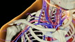 An animation of the subclavian artery. The camera zooms into the neck and the subclavian artery is highlighted.