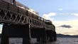 The Tay Rail Bridge carries the mainline railway across the Firth of Tay between Fife and Dundee. It is a key artery on the London to Aberdeen route. This is the 2nd bridge to be built. The first collapsed in December 1879 and remains one of the great engineering disasters of history. A six carriage train with 76 people on board plunged into the icy river, killing all on board. Dundee Tay Rail Bridge with train passing at Riverside Drive Dundee on October 05, 2013 in Dundee, Scotland (Footage by First Freedom/Getty Images)