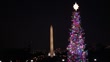 WASHINGTON, DC - DECEMBER 2: The Washington Monument stands behind the U.S. Capitol Christmas Tree during a Christmas Tree lighting ceremony on the West Front Lawn at the U.S. Capitol on December 2, 2025 in Washington, DC. This year’s tree, a 53-foot red fir from the Humboldt-Toiyabe National Forest, marks the first U.S. Capitol Christmas Tree from the state of Nevada. (Footage by Andrew Harnik/Getty Images)
