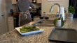 The young woman, clad in a floral apron, carefully washed and trimmed asparagus before arranging them on a baking sheet. She baked them until tender, creating a delightful side dish. - 4K stock video