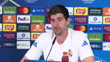 MADRID, SPAIN - FEBRUARY 24: Thibaut Courtois of Real Madrid speaks about Vinicius Junior during a press conference ahead of their UEFA Champions League 2025/26 League Knockout Play-off Second Leg against SL Benfica at Ciudad Real Madrid on February 24, 2026 in Madrid, Spain. (Footage by Europa Press via Getty Images)