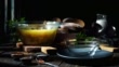 Thick hot soup with pork rib broth, potato and cauliflower steaming in the soup bowl