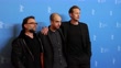 BERLIN, GERMANY - FEBRUARY 22: (SLOW-MO) (L-R) Thomas Kretschmann, Brandon Cronenberg and Alexander Skarsgard attend the "Infinity Pool" premiere during the 73rd Berlinale International Film Festival Berlin at Kino International on February 22, 2023 in Berlin, Germany. (Footage by Christian Ender/Getty Images)
