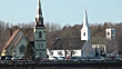 Three Churches in Mahone Bay, Nova Scotia - HD stock video