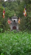 Wide shot view of the three-entranced gate - also known as a "three-entrance hall" or "Shanmen" - to Tu Hieu Temple in Hue city, Central Vietnam. This temple is closely associated with Zen Master Thich Nhat Hanh, known for his teachings on mindfulness and compassion.