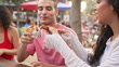 Three multiracial friends enjoying eating food outdoors - 4K stock video